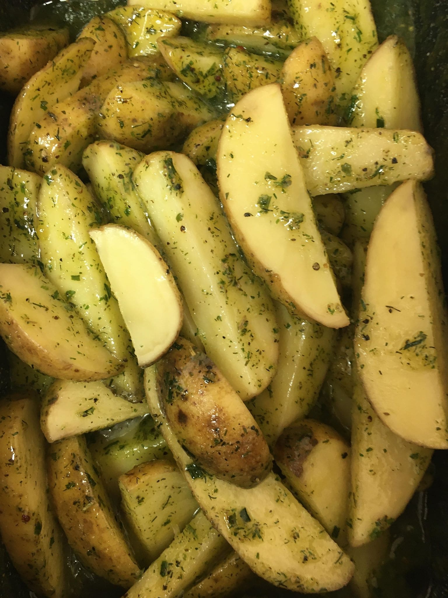 Tasty potato wedges with a tasty garlic and herb sauce. The perfect accompaniment to any meal, just heat and just pop in the oven to roast until ready.